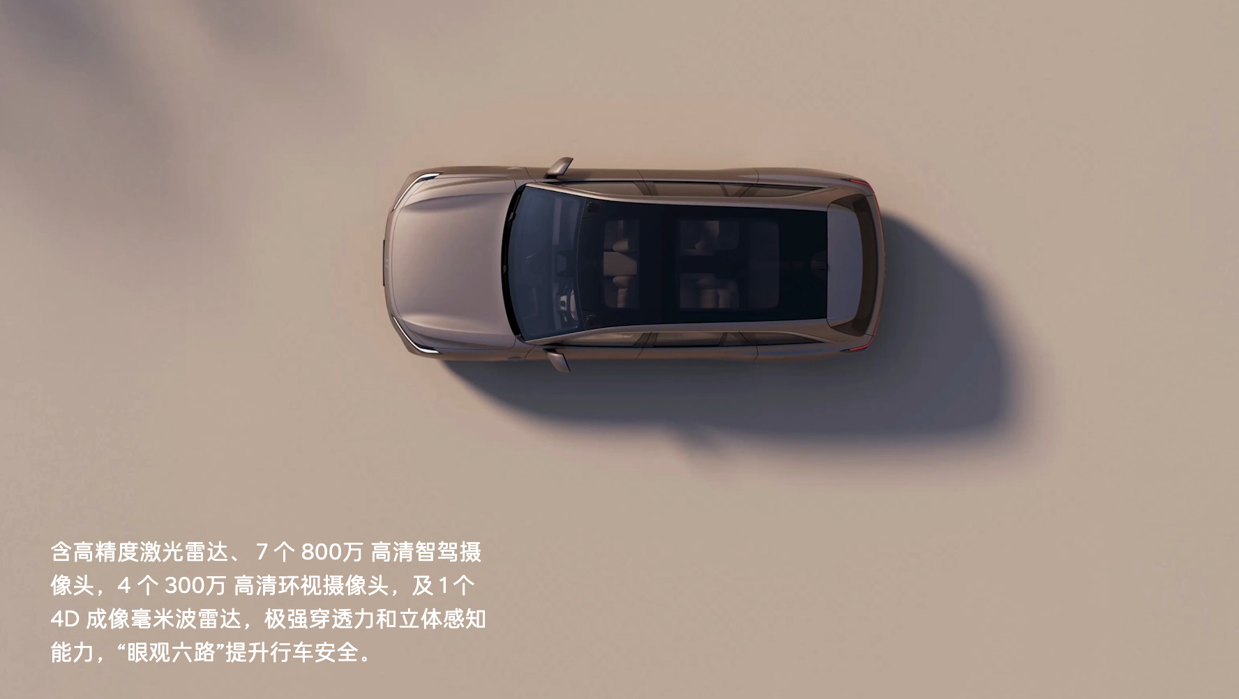 伴随算力提升,感知硬件也得到了扩充。2026 款不仅标配了 7 颗 800 万像素高清摄像头和 4 颗高感光环视摄像头,还新增了高精度激光雷达和智驾小蓝灯。