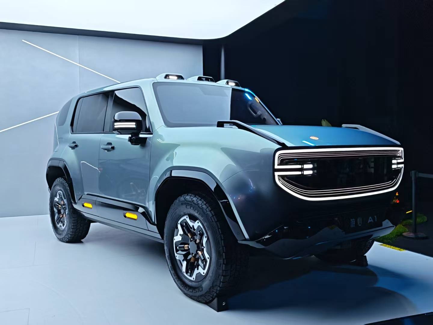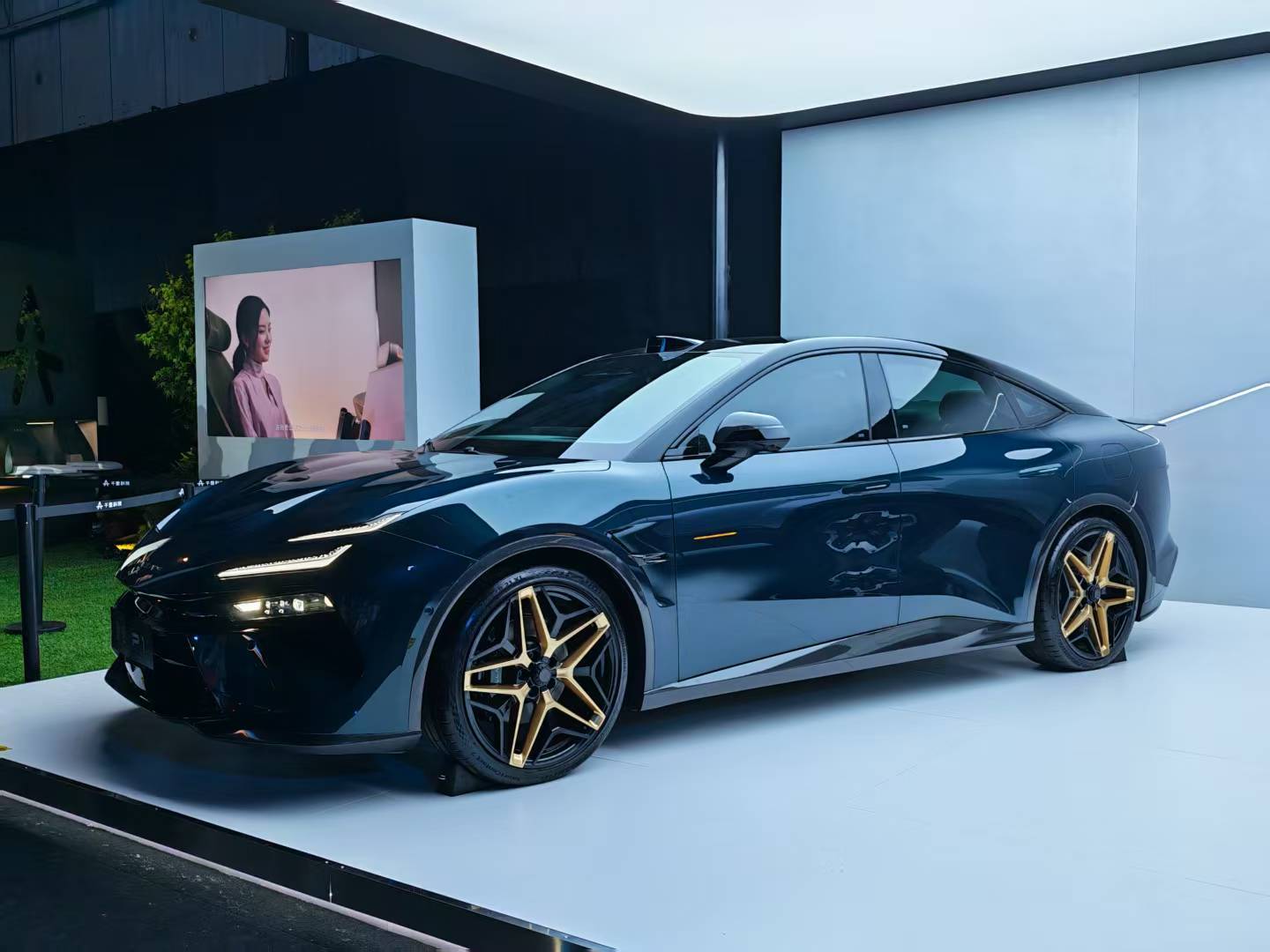 比较有意思的是那辆轿车,造型和吉利旗下的莲花纯电轿车繁花有点神似。