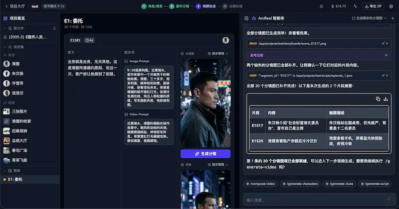开源的 AI 视频生成工作台,输入一本小说,自动完成剧本、人物设计、分镜、短视频生成。(@Pollo3470 投稿)