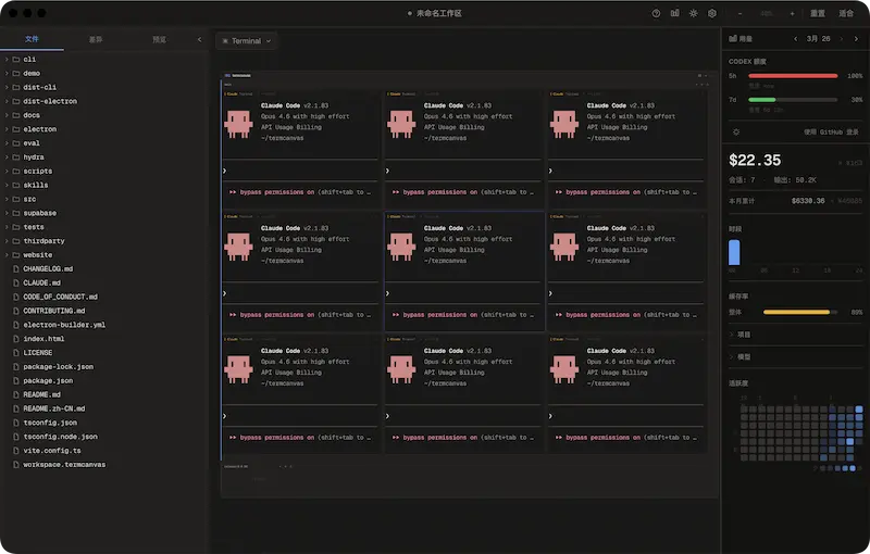 开源桌面应用,所有终端铺在无限画布上,方便管理 AI 编程工具。(@blueberrycongee 投稿)