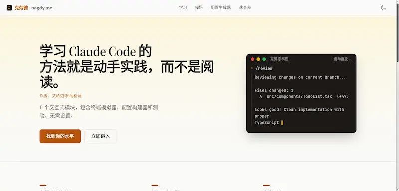 Claude Code 的互动式教程,通过11个小练习,掌握这个 AI 编程工具。