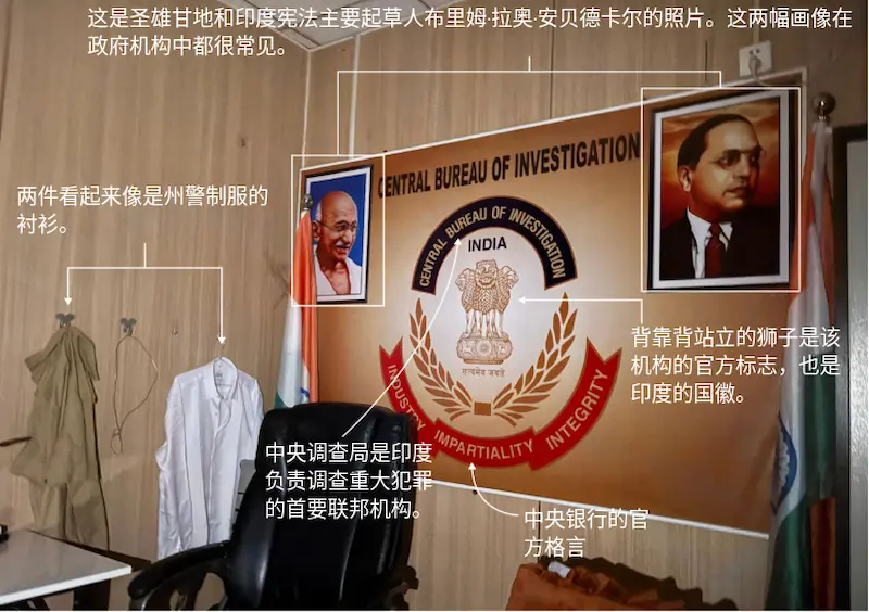 前三张照片是印度警察局,最后一张是巴基斯坦警察局,它们在一栋楼里,房间紧邻着。要知道这两个国家在现实中是对立的,但是不妨碍骗子两边都骗。