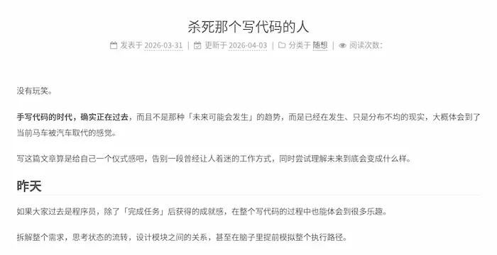 作者是某大厂前端程序员,回顾自己这一年,从手写代码转变到 AI 编程。AI 改变了一切,消解了"35岁退休"。(@wind-liang 投稿)