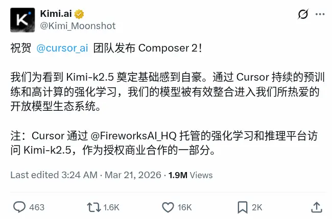 纵观整个事件,Cursor 无疑是输家,Kimi 则是这次的赢家,免费得到一大波高价值的曝光。