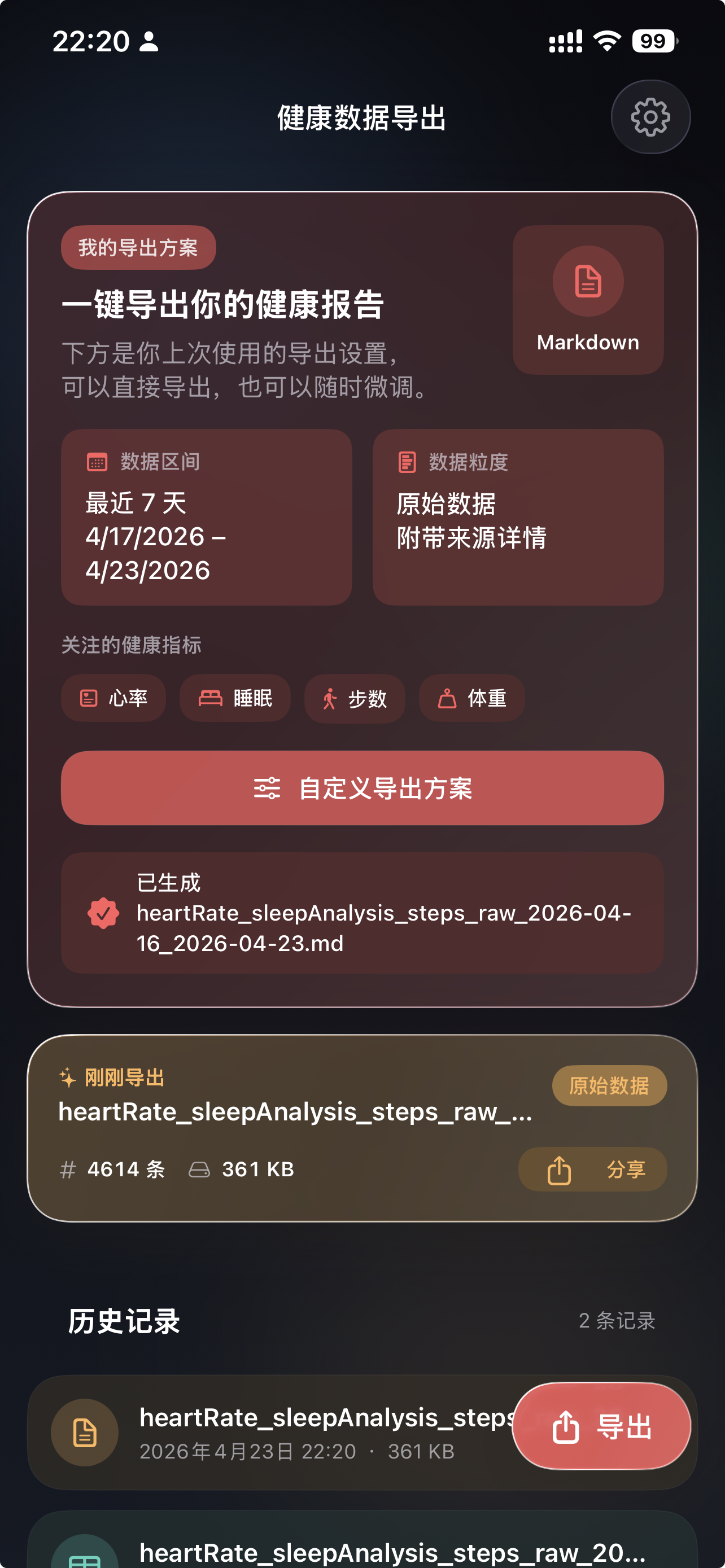 [分享创造] 一个将苹果健康 APP 数据导出的工具,然后把你的数据喂给 AI 分析