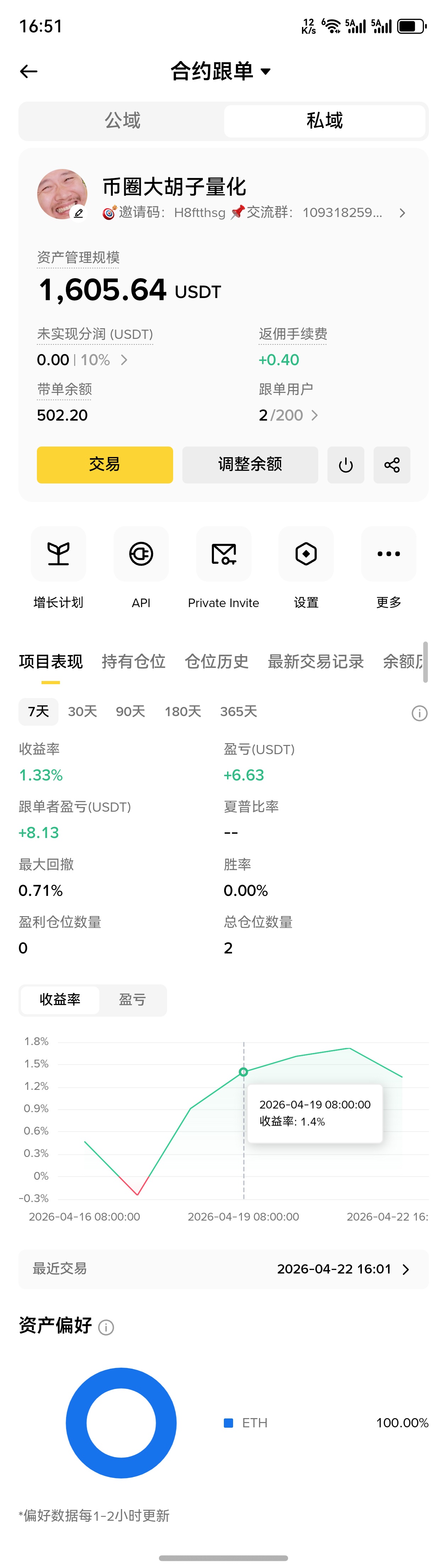 公域跑了 6 个大市值的山寨,私域只跑 ETH 。