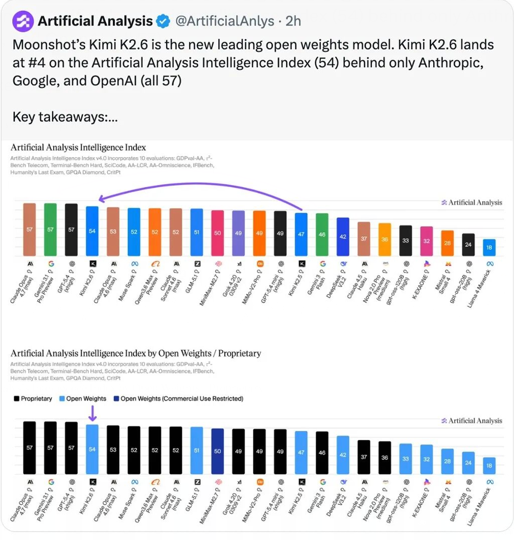 ChatGPT、DeepSeek、腾讯混元们蓄势待发,预计将在两周内轮番出招。昨天晚上,Kimi 也带着新鲜出炉的 K2.6 最强开源基座模型正式登场,代码能力、指令遵循、Agent 长时运行可靠性都有明显提升。
