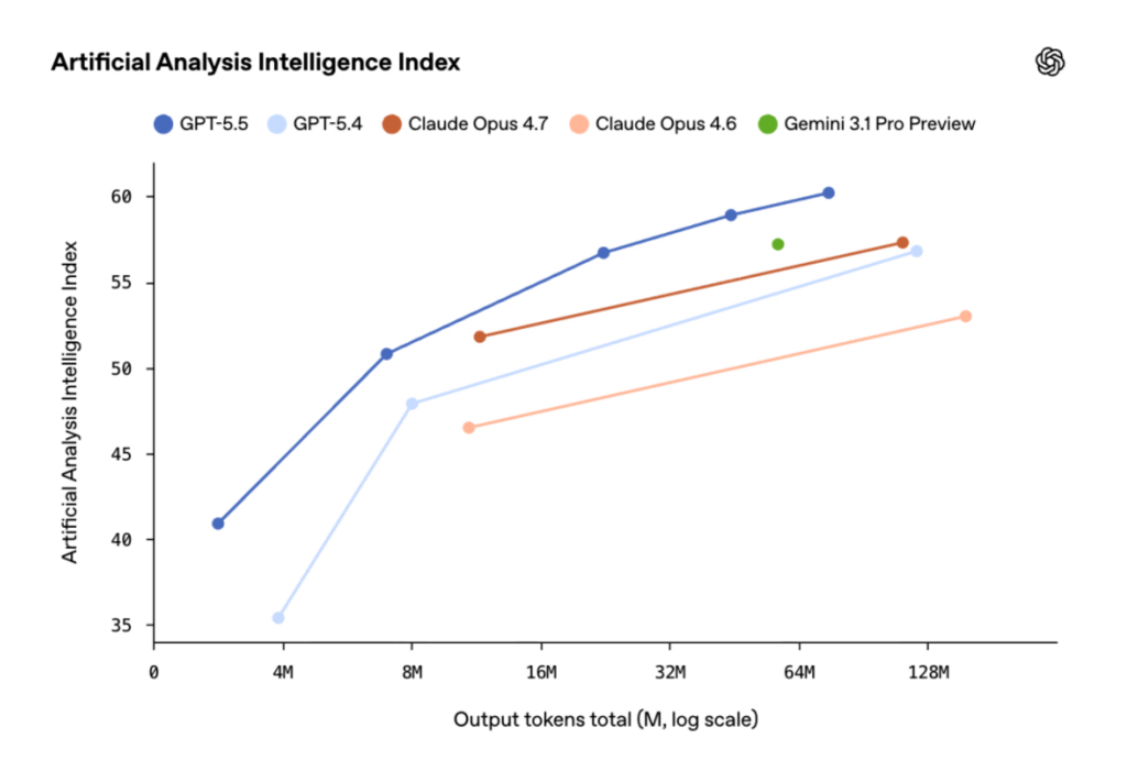 OpenAI acknowledges the price difference in its blog post: “While GPT-5.5 is priced higher than GPT-5.4, it is both more intelligent and much more token efficient. In Codex, we have carefully tuned the experience so GPT-5.5 delivers better results with fewer tokens than GPT-5.4 for most users, while continuing to offer generous usage across subscription levels.”